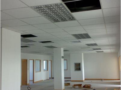 四、顶面材料 矿棉吸音板以及硅钙板都是在厂房装修中比较常用的材料,这些材料价格低廉,燃点较低,操作简单,通常被广大消费者认可,需要值得注意的是,不论使用那种材料做顶面材料都需要主要与消防设施的配合,通常都是先做吊顶龙骨,然后消防工程开始安装喷淋、烟感的管线设施。天花的控制性标高、轴线平面放线结合楼地面放线和墙柱面放线一同进行。待龙骨均安装好并验收合格之后,开始安装矿棉板,安装时应戴手套,保持矿棉板的干净清洁。装配式吊顶组合的主要优点是:吊架隐蔽,吊顶表面平整稳固;板边卡扣式连接、安装简便易行。