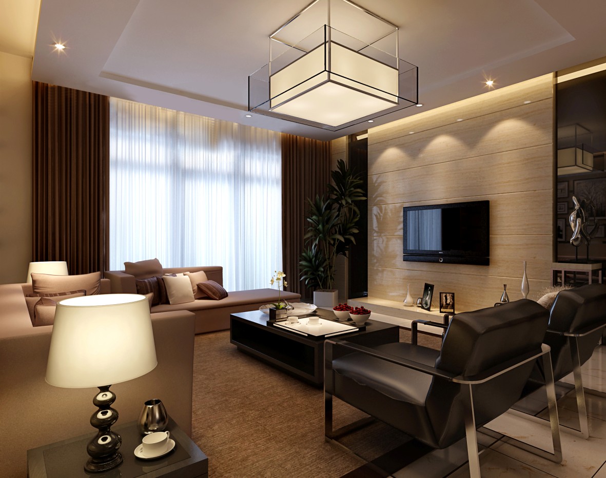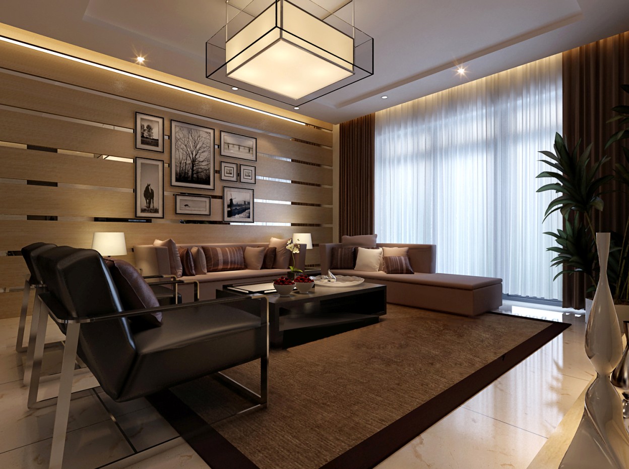 3、瓷砖沙发背景墙:墙面通过黑棕两种颜色瓷砖拼贴,使其很有层次感和艺术感,别墅空间的奢华和品质瞬间就打造出来。瓷砖背景墙是瓷砖与艺术的相结合,而个性化的定制更是满足了人们想从沙发背景墙的设计上展现人生态度品味的要求。