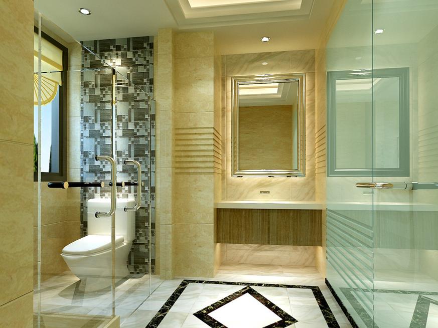首先,要以严谨的布局显示其秩序井然。卫生间面积普遍较小,在布局上应该适合人体功能所需。浴缸、 洗脸盆、坐便器是卫生间的三大件,布局中的通常秩序是三者呈平行势。但也有卫生间布局更为考究的,浴缸带裙边防滑,对墙一侧安装大理石面板的洗脸盆,坐便器就设于浴缸、脸盆中间,相当美观。有的消费者为节省面积将洗脸盆设于墙角落,这种方法既不大方,又碍手碍脚。