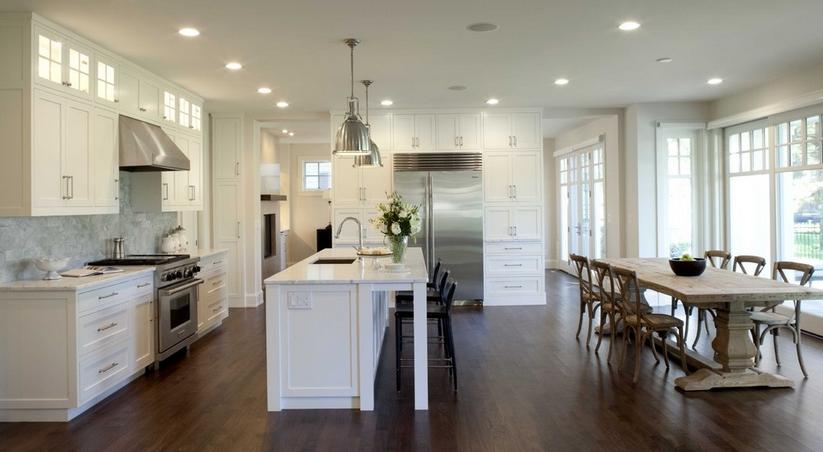 开放式厨房和餐厅的区域,光线一定要充足。吃饭的时候光线好才能营造出一种秀色可餐的感觉。餐厅里的光线除了自然以外,还要光线柔和,同时可以使用吊灯或者是伸缩灯,能够让餐厅明亮,同时使用起来的时候就非常的方便。