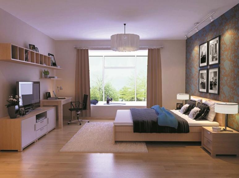植绒面料的窗帘较为厚重,吸音、遮光效果好;选用红、黑配合的窗帘,有助于尽快入眠。