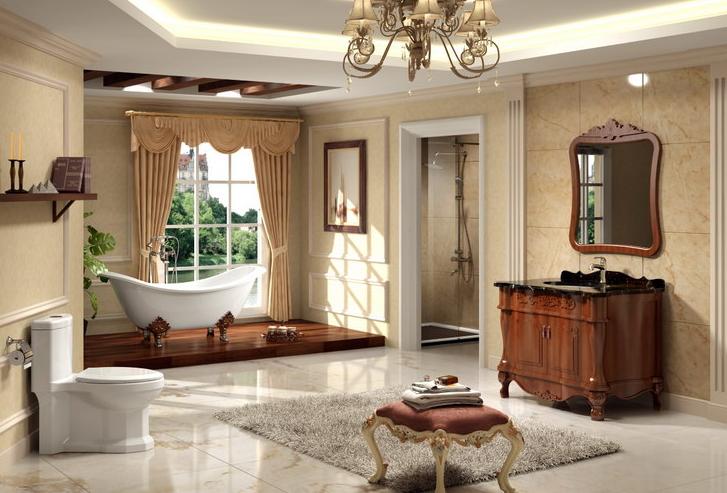 欧式风格装修的居室,通常要在卫生间里铺贴防水壁纸。防水壁纸很适合面积稍大的卫生间。防水壁纸具有特别的防水、防潮性能,遇水不会吸收水分,反而会呈现出透明水珠沾满墙面的清凉画面,情趣盎然。它清理起来也异常简便,用质地柔软的干布擦拭即可,这样也就提升了卫浴空间的新感觉。