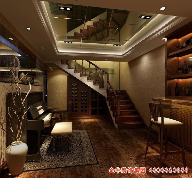 从楼梯所处的位置来讲,给人感觉大多较暗,光源设计尤为重要。过暗的灯光不利于行走安全,过亮易出现眩光,因此,主光源、次光源、艺术照明等要根据实际情况而定。