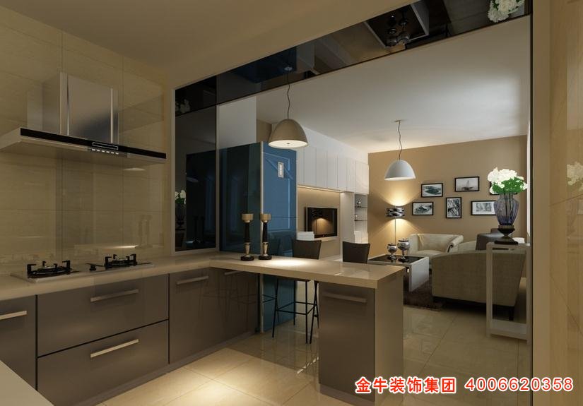 2、家具橱柜风格要统一。如果你的开放式厨房是餐、厨、客一体式的,就要考虑客厅、餐厅的家具与厨房家具的和谐,确保“开放式厨房”能自然地融入到整体家居氛围中。