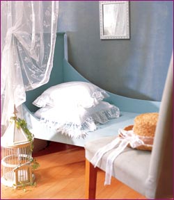 一种潮流在时装界流行之后,也会在家居设计中流行。的确,家居设计与时装总是相互影响、彼此呼应。这就是设计圈里的流行故事。 蕾丝成为潮流主角也就是这几个月的事,而它不仅影响着服饰文化,也引领着家居时尚。早在16世纪的欧洲, 宫廷贵族们就十分喜欢用蕾丝来做衣饰花边和家居用品,在她们看来,蕾丝是最具贵族气质和浪漫感觉的装饰。喜欢蕾丝的女孩,不妨用蕾丝装饰一下自己的房间,在这颇具女性特质的蕾丝家居艺术中,让我们领略蕾丝的万种风情。
