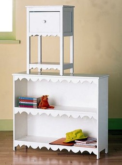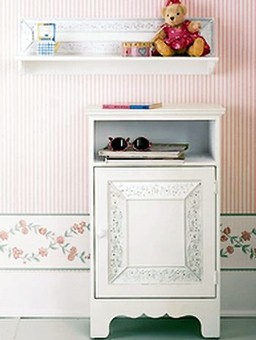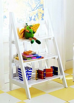 这个白色的三层架子可作书架又可作床头柜,纯白的架子上放置色彩鲜艳的物品,纯净而明快。