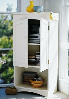 一个带有乡村风味的CD架,无论是敞开的还是关闭的均提供足够的空间把你的音乐收藏品纳入其中。