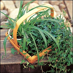 家里装杂物的草编筐最适合装小盆绿色植物,几种植物集中在一个筐中,田园气息就扑面而来了。