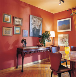 这种挂画方法比较适合普通家庭,没有太多的讲究,只要数量上达到一定程度,都会有比较好的效果。