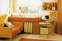 连接方便、容易拆装组合是板式家具的出众特点,也因此深受公寓住宅消费者的喜爱。今年的板式家具更极致地优化了组合的方式,强调DIY的游戏生活可能,即:只要想得到就可以随意组合和拆装。市场上常见的猫王品牌以“家中的移动办公室”最早引发了组装的可能性,后起的“游戏世家”推进了这种组装,强调家具的每个部件均可拆卸,任意组合。这类家具的出现使得那些乐意通过移动家具位置改变家中每季感觉的消费者又找到一个变化生活的出口。挑选这类家具尤其要注意五金件的使用,只有优良的五金件才能确保自如的拆装效果。