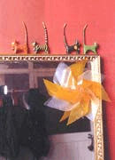 橘色的风车点亮深铜色的全身镜框上的猫摆饰:北向的房间可以温暖的红色让空间热起来。一面放在空间进门处入口的镜子可以将外面的阳光引进来。