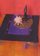 暗红色的墙与铺在木质桌面上的深紫色桌布。属暖色系的颜色如红色、粉红色、黄色、橘色及等,会令人联想起明亮的阳光及温暖的火光,都会带给人较温暖的感觉。