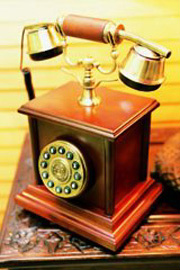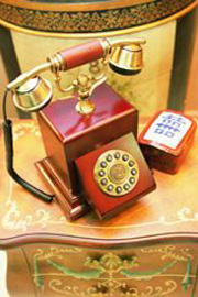 这些仿古电话主要有三类:总统电话、公爵电话、公主电话。“总统电话”的底座是一个长方形的红木或椴木盒子,显得稳重十足,别具王者之气;“公爵电话”则轻巧一些,底座是直径10多厘米的圆柱状,材料也是以红木为主,在模仿“总统电话”沉稳风格的同时又显得更为灵巧一些;而最轻巧漂亮的则是美玉无瑕的“公主电话”了,或洁白或翠绿的整块玉石做底座,圆润光滑的弧线,与公主身份相称至极。