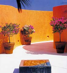 九重葛的紫红色,配上蓝天、黄土墙、白色洋灰地,有份近乎喜悦的刺激。 | |
