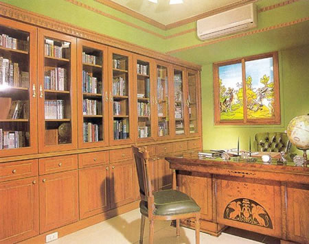 英式风情的书房,以实用为主题,适度的宽大窗户彩绘增加了视觉美。