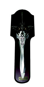 各种兵器是我的他所喜欢的藏品,尤其是刀和剑。游牧民族的刀具制作简单却十分锋利,只是因为不能携带上飞机,只好在当地邮寄。这些都放在他书柜里。只有一把从黄山老街买来的小龙泉剑,被他挂在了书桌前的墙上。剑身画有 龙头 ,剑柄也刻有 龙头 和龙翼,他戏称这是家里唯一“富有阳刚气息”的角落―――谁让他平时懒于家务?!掌有家务大权的我自然更爱用自己的风格来装点家居!
