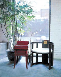 稳重的屏风和高背椅共同演绎出冬日的一段静谧时光。