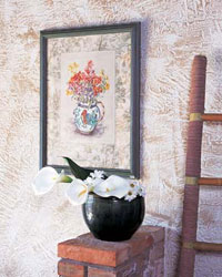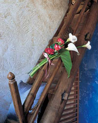 黑与白,刚与柔,静止与生命,强烈的对比造就强烈的美丽。朴素得到了极致的体现,墙面,竹梯,让这里的马蹄莲 比 画框中的品更加生动,入画。