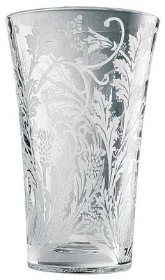 玲珑的水晶花瓶上用磨砂的手法表现出繁复的花卉图案,增加了整个水晶花瓶的品质感。即使没有作为花瓶使用,它也绝对是家里一件不错的视觉作品。