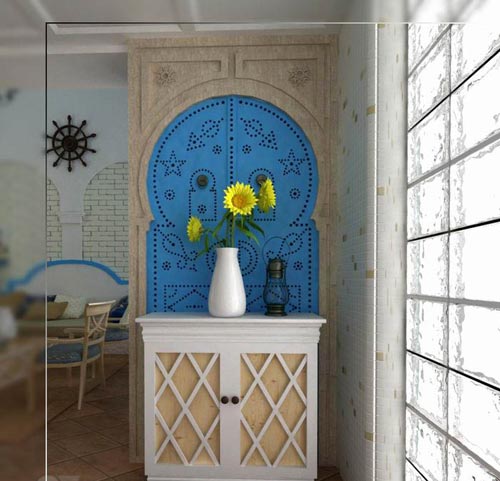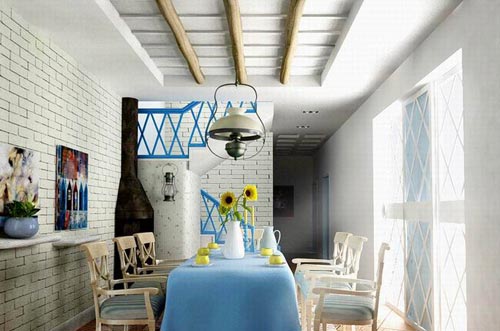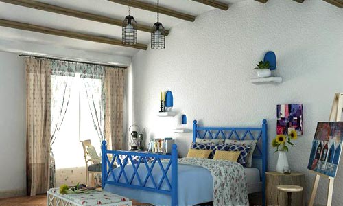 在这个西方文明发源地的国家上,建筑,室内基本都是白色,搭配上蓝色的镶边,门前种植着金黄色的向日葵,屋里的家具摆设让人感觉舒心随意。