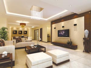 设计者在追求空间层次感外,还利用一些精致夸张的装饰物来装饰,这也是点缀单调空间必不可少的法宝。如在进门玄关安置一个条案,摆放一些古典造型的饰品,以显示主人的个性倾向,再加上一些盆景和实木装饰台以示修身养性。当然,这所有的点睛之笔无不体现主人的喜好,它们错落有致地摆放在角角落落,整体效果却呈现出意想不到的落落大方。