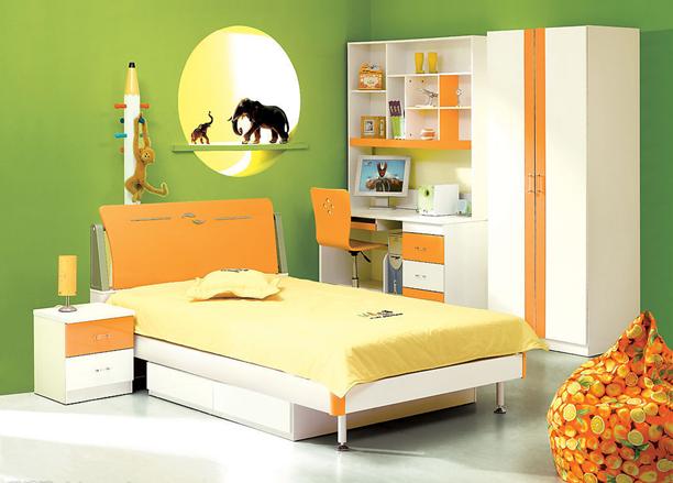 儿童居室美化首先需深入地研究儿童的心理特点,儿童对于色彩的感觉,形式的感觉,空间的感觉与成年人都是不同的。因此,儿童居室中的室内陈设都不宜过大,应符合儿童的特点,家具的形式可采用较活泼的造型,尽量采用圆角,表面光滑的家具。