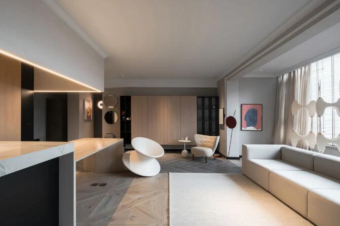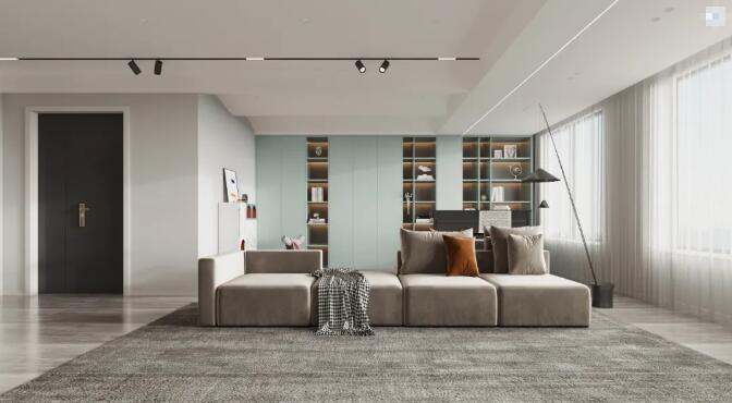 如果是横厅户型,可以设计更多的休闲方式!例如,在沙发后面设置你想要的休闲空间,喝茶,看电影,练习钢琴!