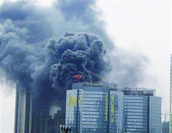 富力盈泰售楼部小姐:顶楼工人烧焊引起