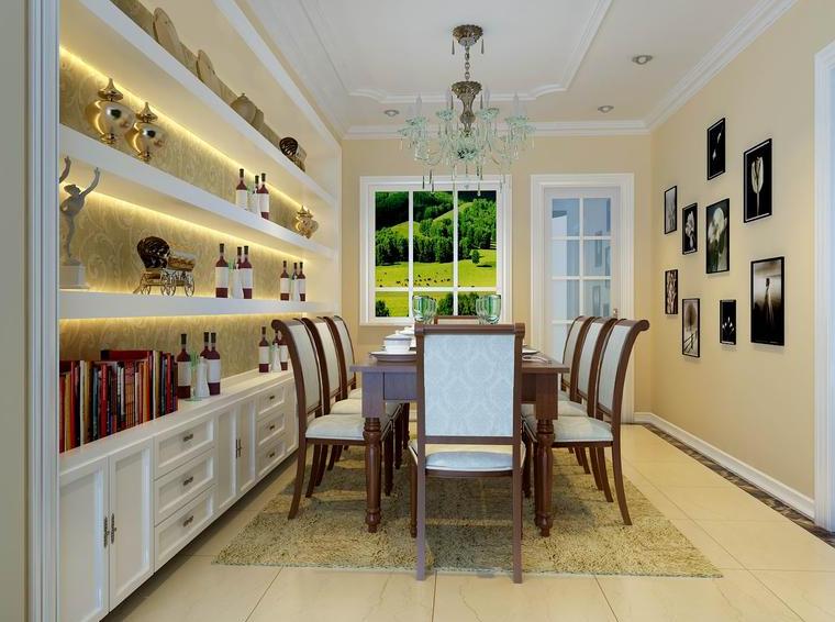现在餐桌的造型越来越多,方桌、圆桌、折叠桌、不规则型,不同的桌子造型给人的感受也不同。方桌感觉规正,圆桌感觉亲近,折叠桌感觉灵活方便,不规则型感觉神秘。灯具造型不要繁琐,但要足够亮度。可以安装方便实用的上下拉动式灯具;把灯具位置降低;也可以用发光孔,通过柔和光线,既限定空间,又可获得亲切的光感。