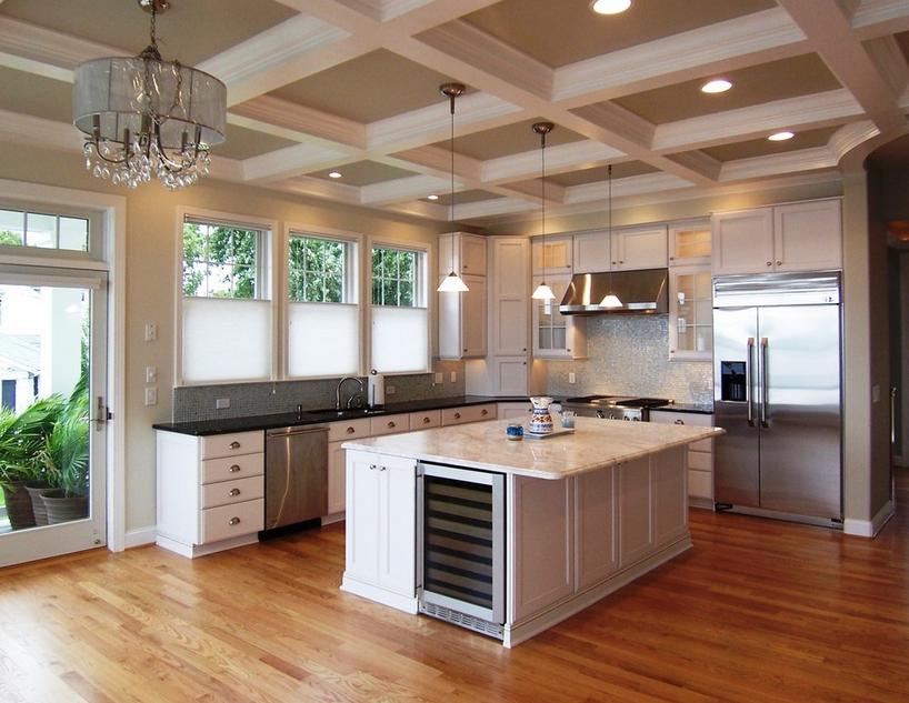 1、平面式 平面式吊顶是指表面没有任何造型和层次,这种顶面构造平整、简洁、利落大方、材料也较其它的吊顶形式为省,适用于各种居室的吊顶装饰。它常用各种类型的装饰板材拼接而成,也可以表面刷浆、喷涂、裱糊壁纸、墙布等。(刷乳胶漆推荐石膏板拼接,便于处理接缝开裂)用木板拼接要在严格处理接口,一定要用水中胶或环氧树脂处理。