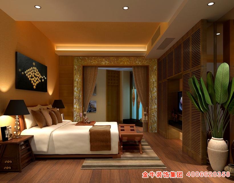3、小户型卧室中式装修内家具在进行摆放的时候,注意摆放一些家具的时候,尽量将其靠着墙面。这样中心地带就可以空出很多位置。显得空间多了很多。还不会因为斜边斜角被磕碰。所以业主对此知识也得有所看重才是最重要的。
