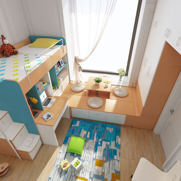 榻榻米双层床太亮,颜色会长期影响心理健康。一定要使用浅色和稳定的颜色。榻榻米双层床下没有储物柜,相当于一个巨大的污染源。