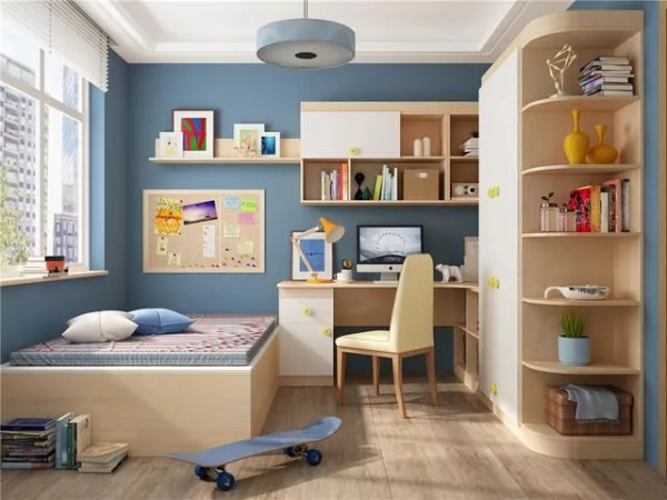 小房间的照明相对有限,所以墙面颜色装饰选择更明亮的颜色,冷色调是一个很好的选择,因为冷色调可以扩大视觉空间面积。