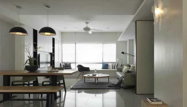 3、充分利用划分区域的地面装饰。为了突出区域感,很多人会选择在不同的区域使用不同的材料和高度来划分区域,天花板也呼应,造成曲折的空间结构,衍生出许多家庭走廊,会造成视觉障碍和空间浪费。