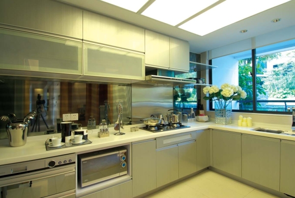 在厨房装修中,除了必要的主灯外,有些区域还应该有相应的照明。特别是对于洗涤区和准备区,建议在吊柜下部设置聚光源,并设置快速开关装置。在操作区域,充足的光线尤为重要,因为它有利于火灾。