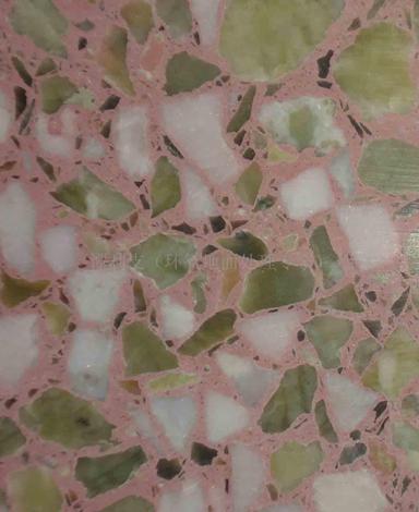 色石碴用于磨石子地坪的面层,常用的有白色(汉白玉、白云石)、红色、桃红色(东北红、曲阳红)棕黄色(松香石、湖北黄)、黑色(煤矸石、东北黑)等,色石渣有6种规格,1厘米厚面层多用大八厘.。(即2.石,粒径在8毫米左右),或中八厘.(粒径6毫米左右)。