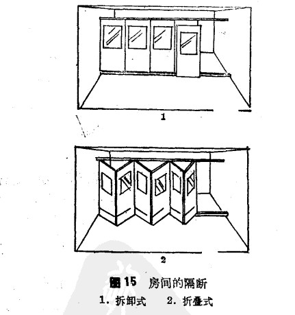 生活中常会有这样的需要:偌大一个空间,一套家具无论怎么放总觉得不怎么舒服,或者房间虽大,但生活起居、待客活动都在一间屋子里,甚感不便,或者一间居室,一家老小三代同居一室等。遇到这种情况,都会想到将房子分隔开来。隔断和隔墙便是室内分隔中常用的方法。隔墙墙体直抵平顶,隔断一般在室内上部留有空间,用于通风和采光。常用的隔断有玻璃隔断、纤维板隔断、粘合板隔断和金属隔断等,工艺上分有固定式和活动式两种,活动式又分成折叠式和拆卸式两种。