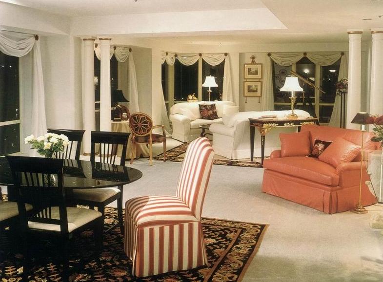 譬如家具是粟皮色的,地板最好选用墨绿色;家具是杏黄色的,地板可用绛红色。天花板则一律采用白色为好。为了使家具色彩显得突出、美观,在凸起的部分与凹下的部分以对比色为宜。如棕色以淡黄色作对比,奶白色以淡棕色作对比。