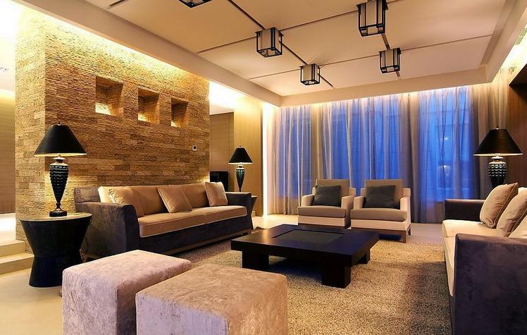 如果墙面大,窗户小,用对比色也能取得较好的效果,像红与绿、黄与紫,但在明度上要降低些.过于强烈的对比会显得刺眼。此外,如果墙面挂的饰物较多,则应选用纯色窗帘,免得使人眼花缭乱。